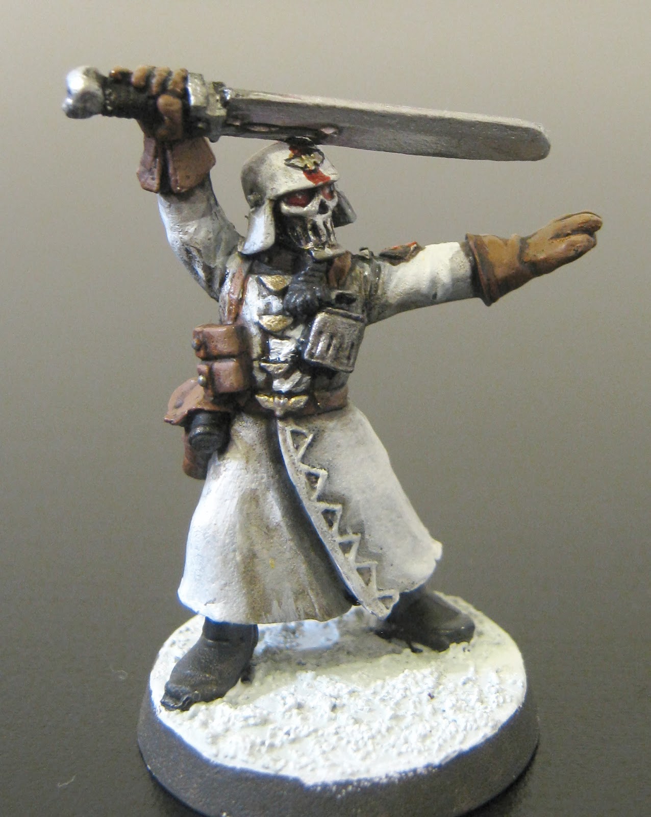 - Grim Blades – Typically for a Blood Axe, the leader of the Grim Blades, Sniklug Gortoof Og Nargor, wears attire that is a foul parody of the uniforms worn by the Imperial Guard. Unlike most other Orks, Sniklug wears little decorations; his wrist mounts several necklaces previously worn by high ranking Imperial Navy officers and priests.